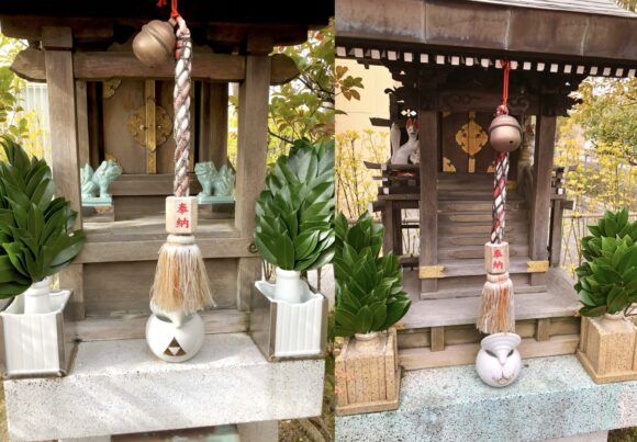 オリエンタル鍍金では稲荷大神を構成する神々「五柱の神」のうちの1柱である「権太夫大神(ごんだゆうおおかみ)」と、水や天候を司る神様である「八大龍王(はちだいりゅうおう)」を祀っております。